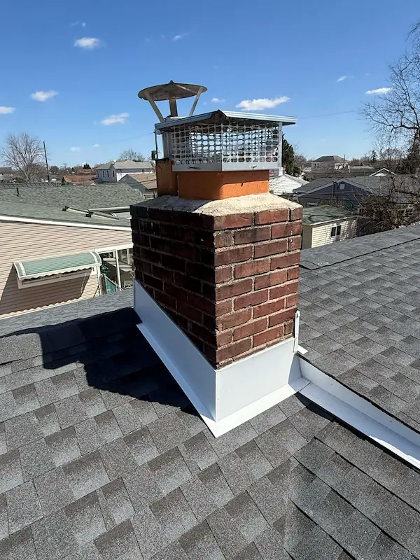 Replacing failed lead or aluminum flashing at the roof-chimney junction permanently stops the most common source of interior ceiling and wall water damage in Bucks County homes.